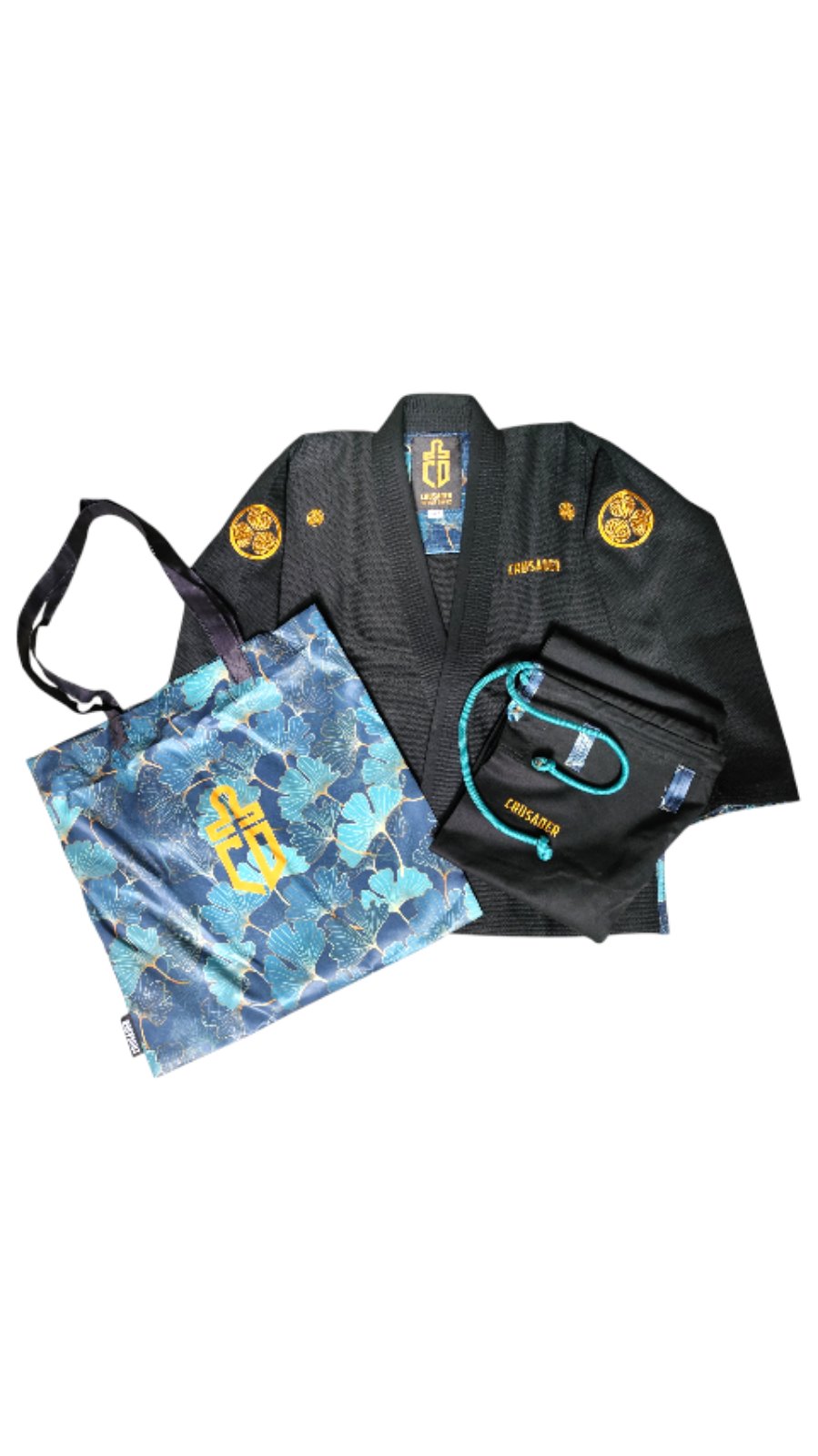 The Gi features a Kamon, a Japanese emblem used to decorate and identify a clan. And a silky fabric with distinct Japanese patterns.• Black with Gold Accents.